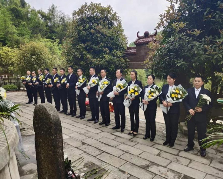 公司總經(jīng)理李政誼向烈士獻(xiàn)詞,表達(dá)對(duì)烈士的深切哀悼,然后帶領(lǐng)大家在紀(jì)念碑前開展了掃墓、默哀、獻(xiàn)花籃等活動(dòng)。
