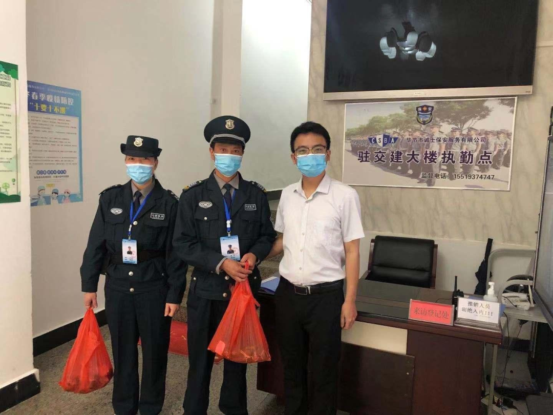 6月10日,公司管理人員分成小組,分別去到畢節(jié)婦幼保健院、匯金中心、交建大樓等各駐勤點,向隊員們逐一送上親手包的粽子,借此表達對他們辛勤付出的感謝,要求他們在節(jié)日期間要一如既往認真履行工作職責,保證安全;對不能與家人團聚的隊員,要求他們主動打電話給家人報平安,并致以節(jié)日問候。
